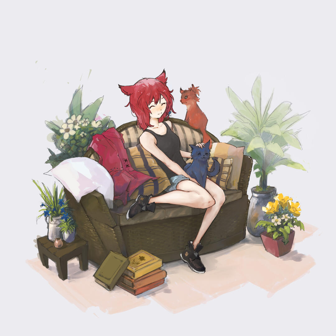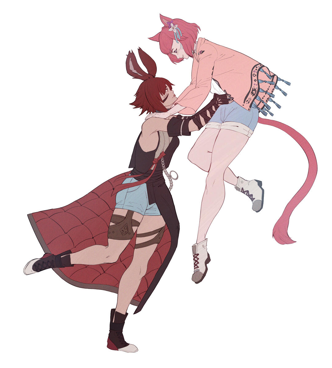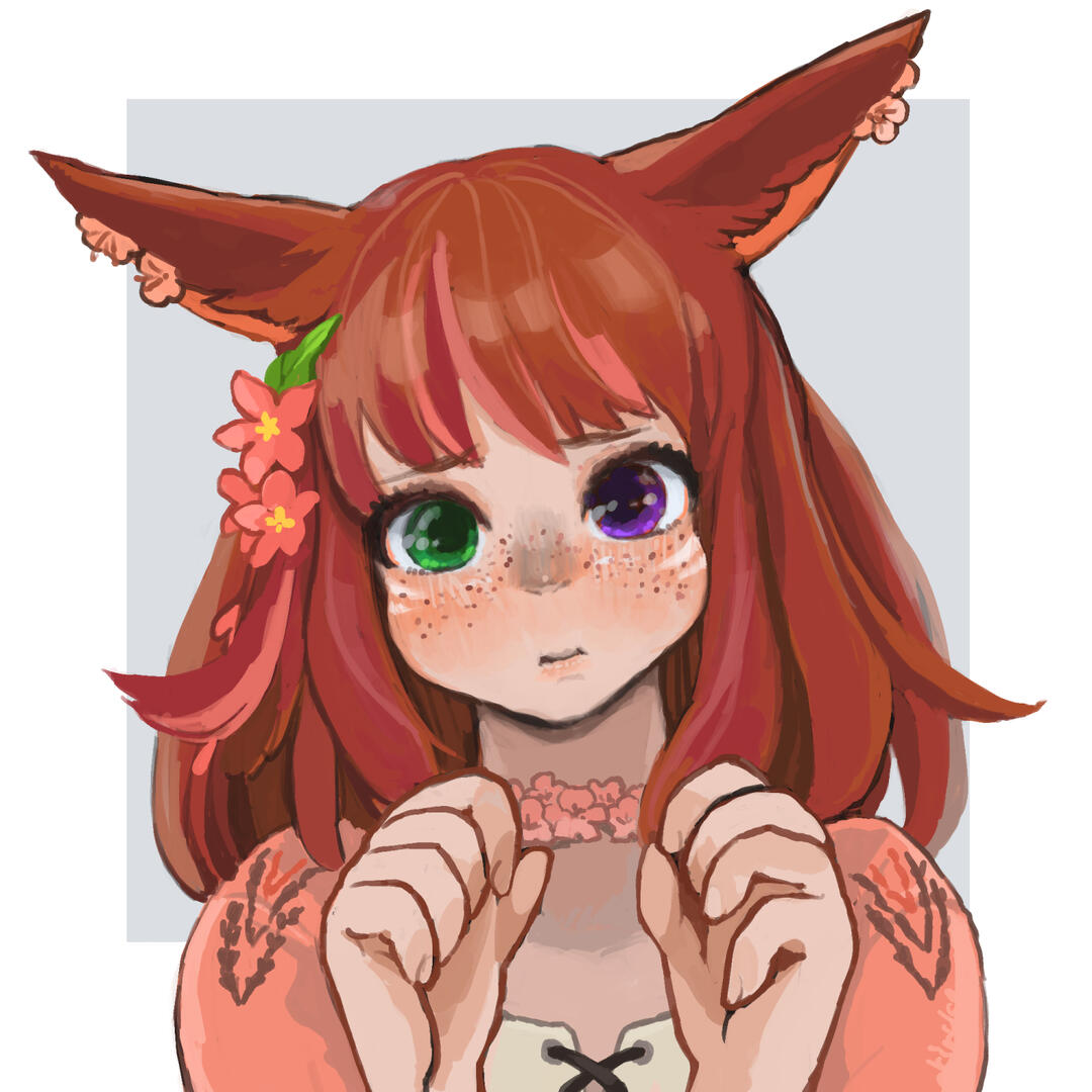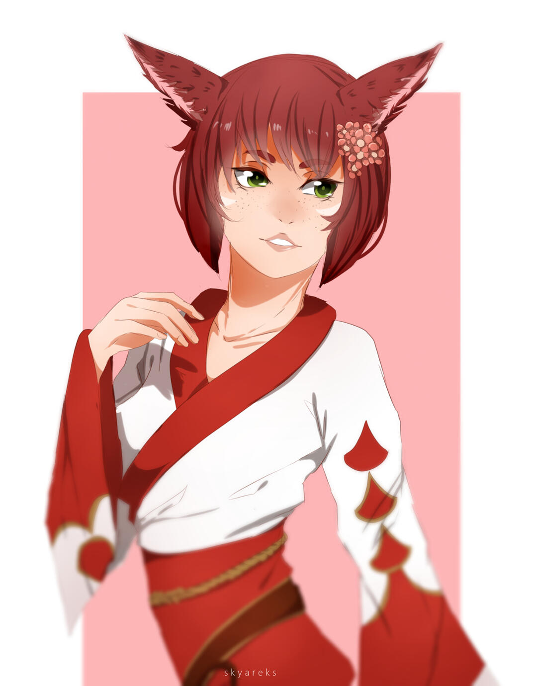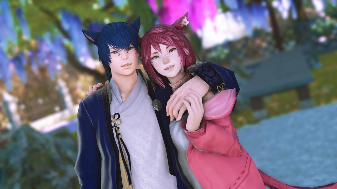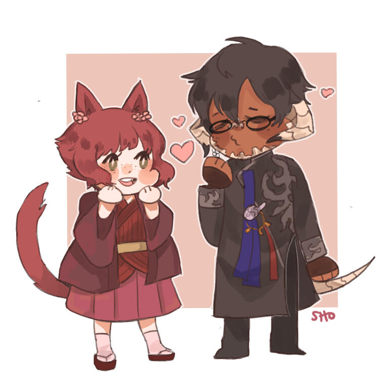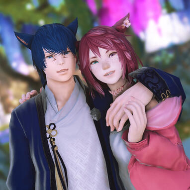 Minato and Mina were ambushed while out hunting with their mother Kigoh and taken to Kugane's red light district where their mother was forced to work and the children were made to do chores and labour. They were able to escape, and grew up living with adoptive Hyur parents in Kugane. Kigoh is presumed dead as she was unable to escape with the children. Mina left the Kimura family home at 18 in search of her father, and ends up back in the Shroud. After being reunited with Minato years later, the two began to run their bar.When Mina, Minato and Kigoh were kidnapped and taken to Kugane, Kigoh'a had been out hunting with his father Nehza'a Pagha, and had no knowledge of what had happened. He believes it to be his own fault as he was unable to go and rescue them and his father wouldn't allow him to venture out alone at his age.It is rumoured that Nehza’a (their father) disliked the siblings Minato and Mina and this is the reason why he didn’t go after them. It is also rumoured he was cheating on Kigoh. An even worse rumour is that he organised the kidnapping, but he fled the tribe before any of this could be investigated. His whereabouts are unknown.Mina and Minato run their bar in the Lavender Beds, hosting events and meeting many people. The siblings have been caught up in the doings of a Bahamut cult, Mina having been kidnapped and experimented on in an laboratory, resulting in her left eye turning purple and becoming afflicted by the same voidsent as her friend Artair. Minato has vowed to protect and save Mina in any way he can, which has resulted in him making a pact with a cult member to win a tournament to cure Mina's ailment.